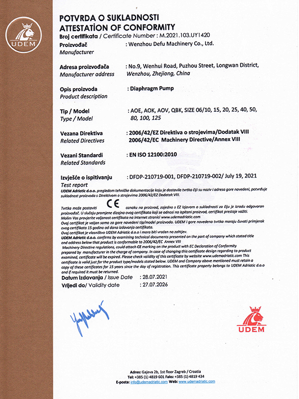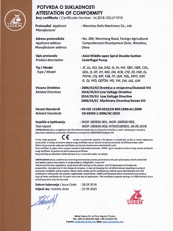DefuMachinery занимается проектированием, разработкой, производством и продажей насосов, в том числе насосов для откачки воды, центробежных насосов с односторонним всасыванием, мембранных насосов, насосов со смешанным потоком, ушестерённых насосов, насосов с приводом от дизельного двигателя, пожарных насосов и некоторых других.