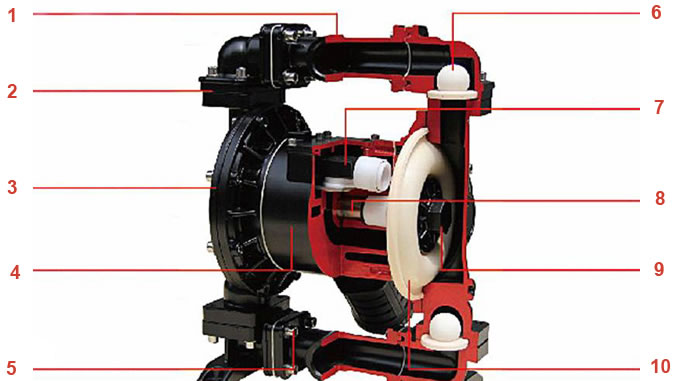 4. Отливка корпуса из прочного чугуна марок SS304 и SS316 с применением сплава алюминия, а также полиэтилена и поливинилиденфторида (PVDF). Диафрагмы изготавливаются из тефлона, износостойкой резины, нитрилакрильного и фторсодержащего каучука, обеспечивающих высокую надёжность и длительный срок службы.